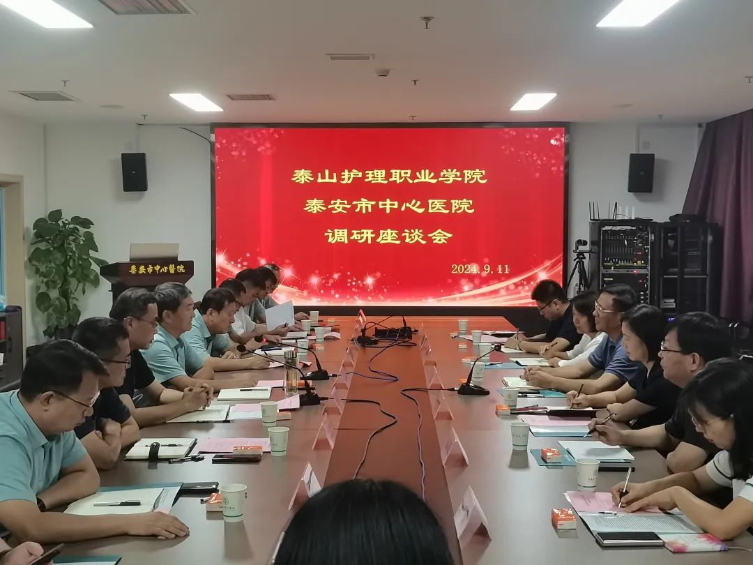 9月11日上午,学院党委书记黄正玉,党委副书记、院长荆丽艳,副院长李红伟及相关部门负责人前往泰安市中心医院走访调研。泰安市中心医院党委书记,泰安市医疗发展集团党委书记、理事长倪庆宾,党委副书记朱世卿等领导班子成员出席活动。