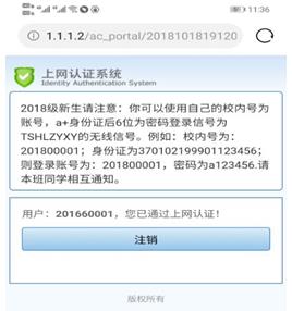 老师们的手机如果要通过“TSHLZYXY”热点登录互联网,操作于笔记本登录类似,步骤如下: