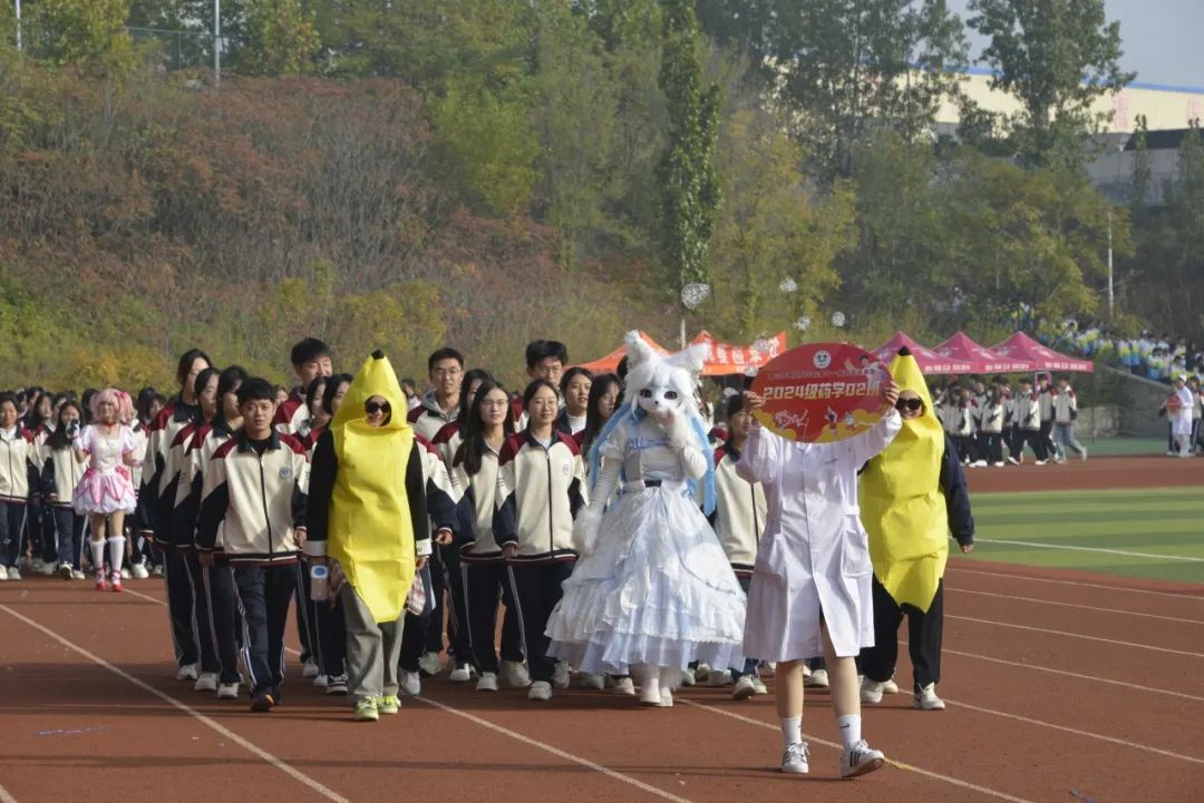 开幕式上,各系各班级入场队伍竞相展示着他们的创意与活力,将现场气氛推向了一个又一个高潮。精心设计的条幅,书写着鼓舞人心的口号和班级精神的寄语;手持泡泡机,按出无数晶莹剔透的泡泡,编织关于梦想与希望的美丽梦境;身着各式动漫、游戏角色的服装,学生以独特的造型和生动的表演,赢得了在场师生的阵阵欢呼与掌声;舞龙队伍翻腾跳跃,展现出中华传统文化的魅力与风采;更有青蛙、兔子、恐龙、大灰狼等动物造型的队伍,以诙谐幽默的方式,为开幕式增添了一抹轻松愉快的氛围,让人们在欢笑中感受到了团结与友爱的力量。
