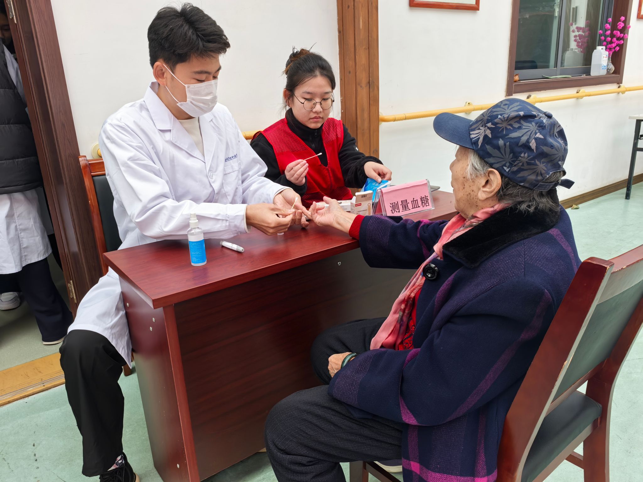 活动中,同学们发挥专业特长,设健康监测、中医咨询、推拿按摩等区域,传递关怀、弘扬尊老风尚。健康监测区,志愿者耐心测血糖血压、记录数据,给异常者温馨提示;中医咨询区,马鹏飞望闻问切把脉,解答养生及慢性病疑问、传授保健知识;推拿按摩区,志愿者专业手法放松老人肩颈、舒缓筋骨,获阵阵赞叹。此次实践,同学们锤炼了技能、增强了责任感,实现实践育人与服务社会融合,现场气氛温馨。