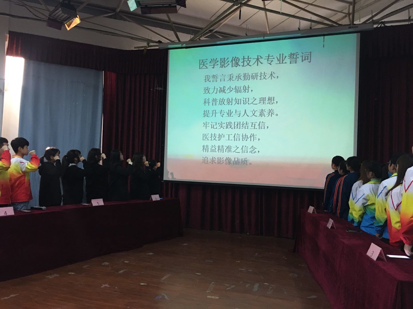 本次竞赛活动共分为两个项目3个环节:放射宣誓和知识竞赛。第一个项目是放射宣誓。鉴于11月8日为放射日,为了强化学生的职业自豪感和认同感,在专业老师的领读下,全体放射师生200多人,共同起立,面对伦琴像,进行作为医学影像技术人的庄严宣誓,“我决心献身医学影像技术事业,大医精诚,全心全意.....”,整齐响亮的宣言让宣誓的每位影像人深深震撼,心灵接受了庄严的洗礼,作为影像人的责任和自豪油然而生。